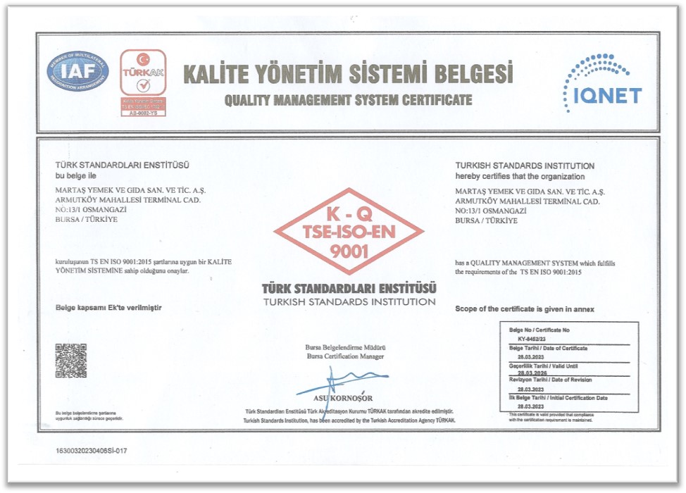 1996 yılında Diniz Holding çatısı altında faaliyet göstermeye başlayan Martaş Yemek Sanayi, kurulduğu günden bu yana kaliteli, güvenilir ve hijyenik yemek üretimi konusunda dikkatle çalışmalarını sürdürmektedir. İlk olarak kendi bünyesine hizmet sunmak üzere yola çıkan firmamız, artan üretim kapasitesi ve profesyonel kadrosuyla birçok farklı sektör ve firmaya yemek hizmet vermeye devam etmektedir.
